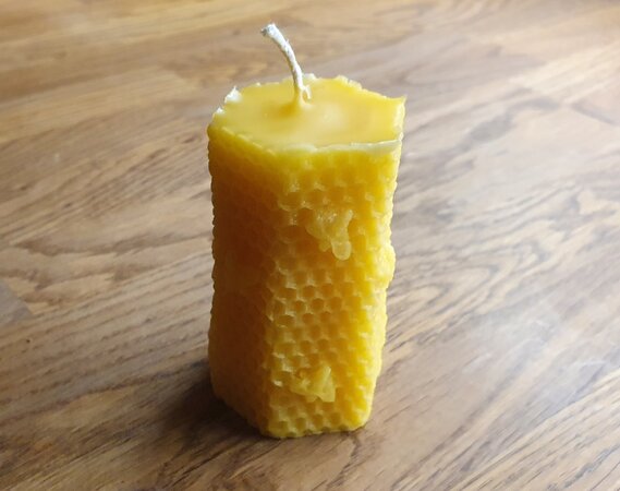 Unser Bienenwachs wird von März - September aus unseren Bienenvölkern durch verschiedene Waben geerntet. Der Bienenwachs wird im Anschluss eingeschmolzen, mehrfach gefiltert und gereinigt, bevor er in einer Kerzenform seine endgültige einzigartige Form erhält.